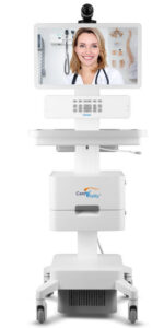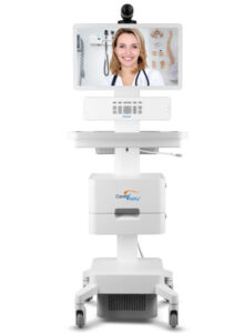 Telehealth devices connect to CareVitality’s carts or kiosks to share diagnostic data with providers during virtual visits to allow for real-time assessments.